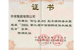 展開(kāi)豐球牌潛水電泵被評(píng)為2012年度中國(guó)機(jī)械工業(yè)優(yōu)質(zhì)品牌; 參與JB/T5415-2013《微型離心泵》國(guó)家行業(yè)標(biāo)準(zhǔn)起草。